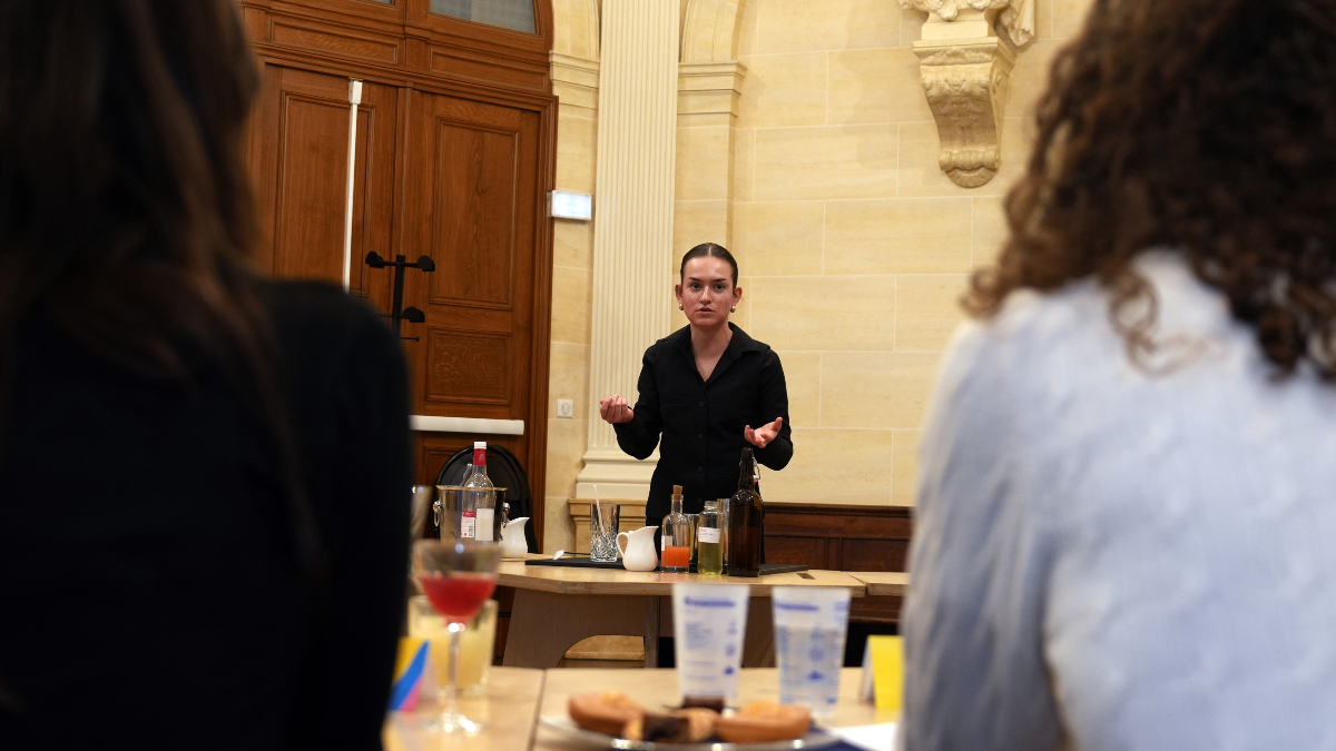 L'étudiante Zahia de Kerpel présente son mocktail « Lumière du Verger ».
