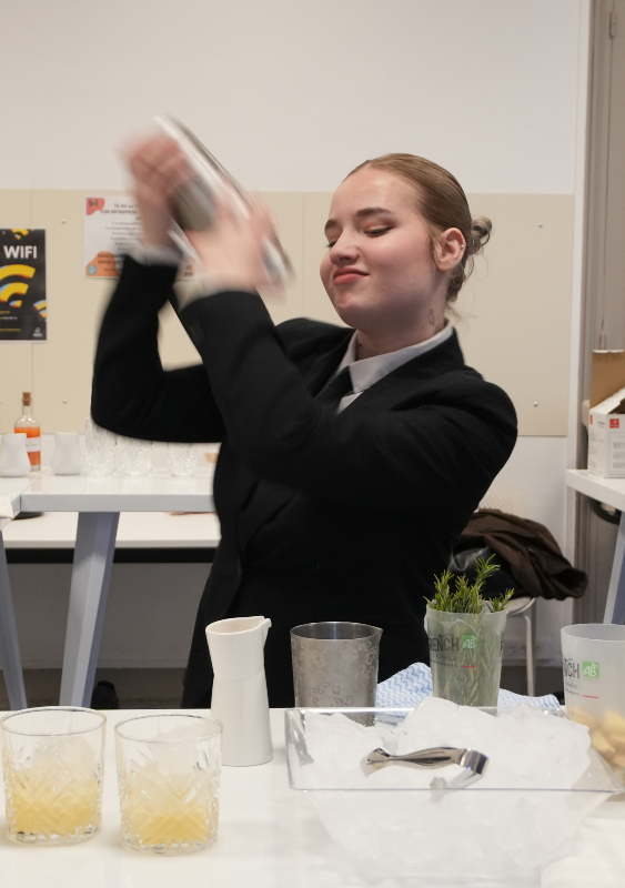 L'étudiante Léa Souci prépare son cocktail « Lady citrus ».
